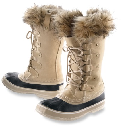 Sorel Joan of Arctic NEXT Womens Snow Boots. Sorel Joan Of Arctic Womens. This classic silhouette features a beautiful waterproof full-grain leather and suede upper super-soft faux fur around the cuff and a removable recycled felt inner boot to ensure that feet stay warm dry and comfortable in cold winter conditions.